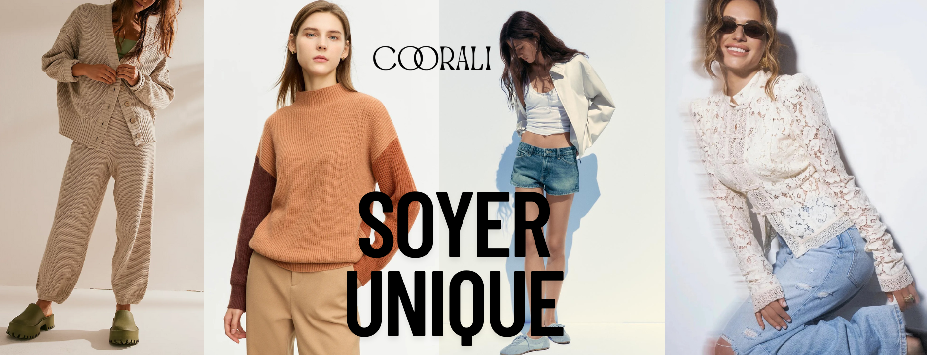 « LA DESTINATION DES TENDANCES » Notre objectif est de proposer les dernières tendances en matière de vêtements et d'accessoires. En mettant l'accent sur les tendances, le développement de la communauté et les médias sociaux, COORALI est devenue une référence pour les consommateurs soucieux de la mode dans le monde entier.