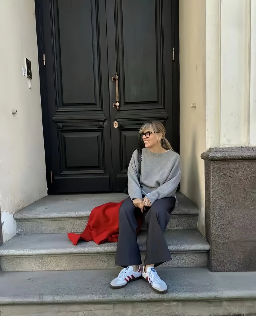 🌀 Coupe ample, col rond et manches longues pour un look détendu et élégant