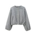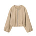 Son col rond raffiné et ses manches longues bouffantes créent une silhouette féminine et tendance, tandis que les poignets intérieurs élastiques assurent un maintien parfait tout au long de la journée.