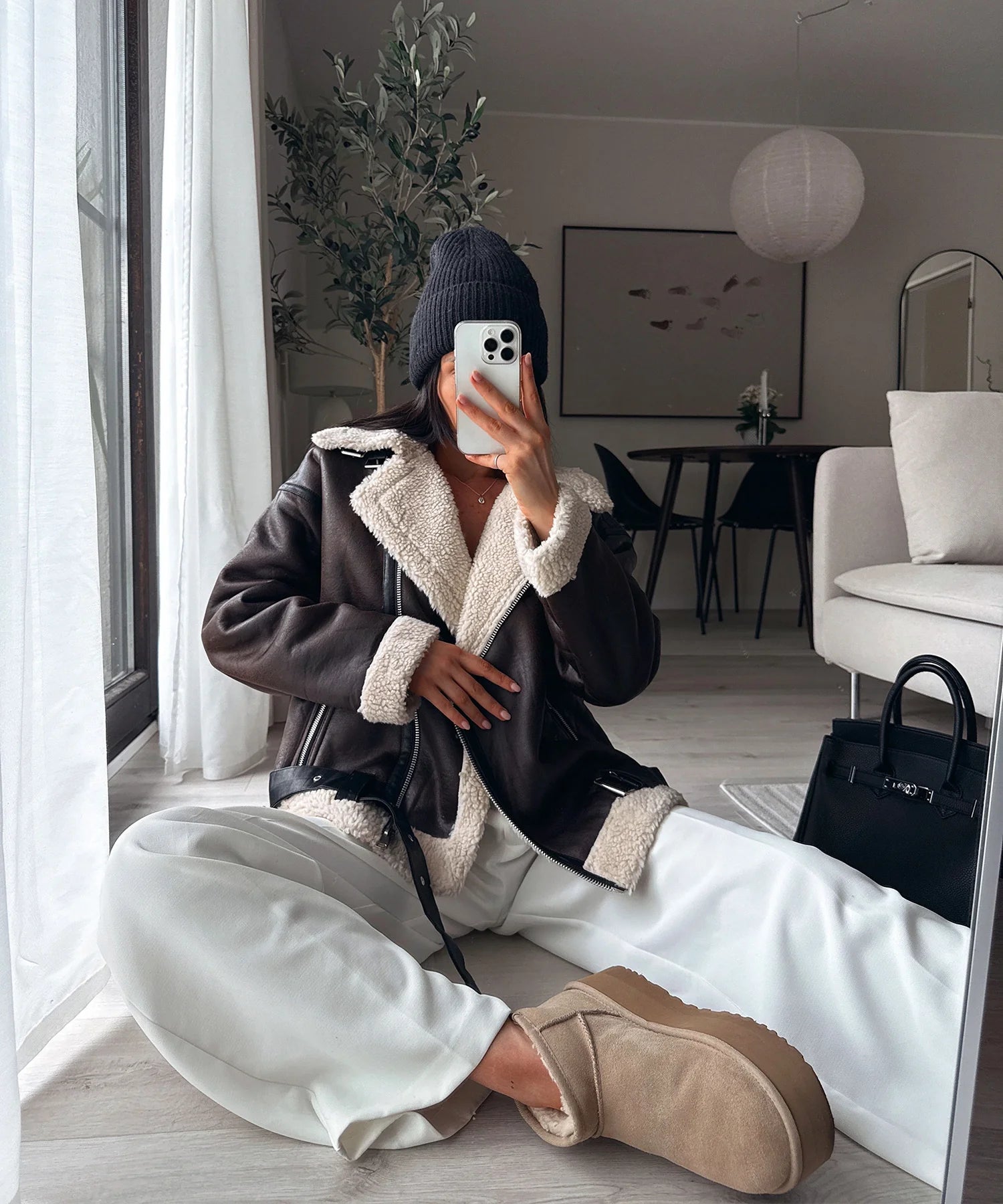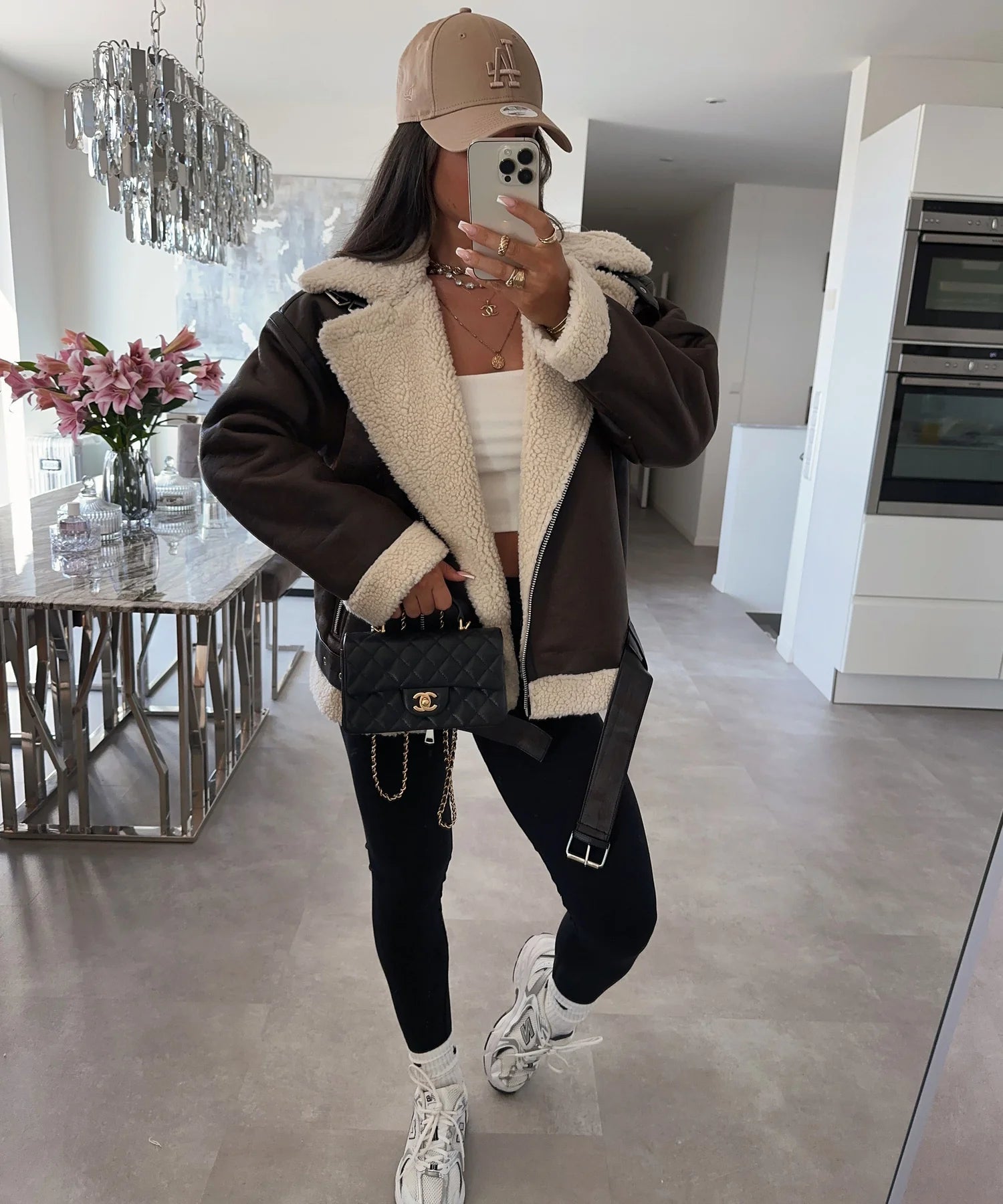 Doublée de fourrure ultra-douce, elle vous enveloppe d’une chaleur agréable tout en restant élégante et légère 🤍.
