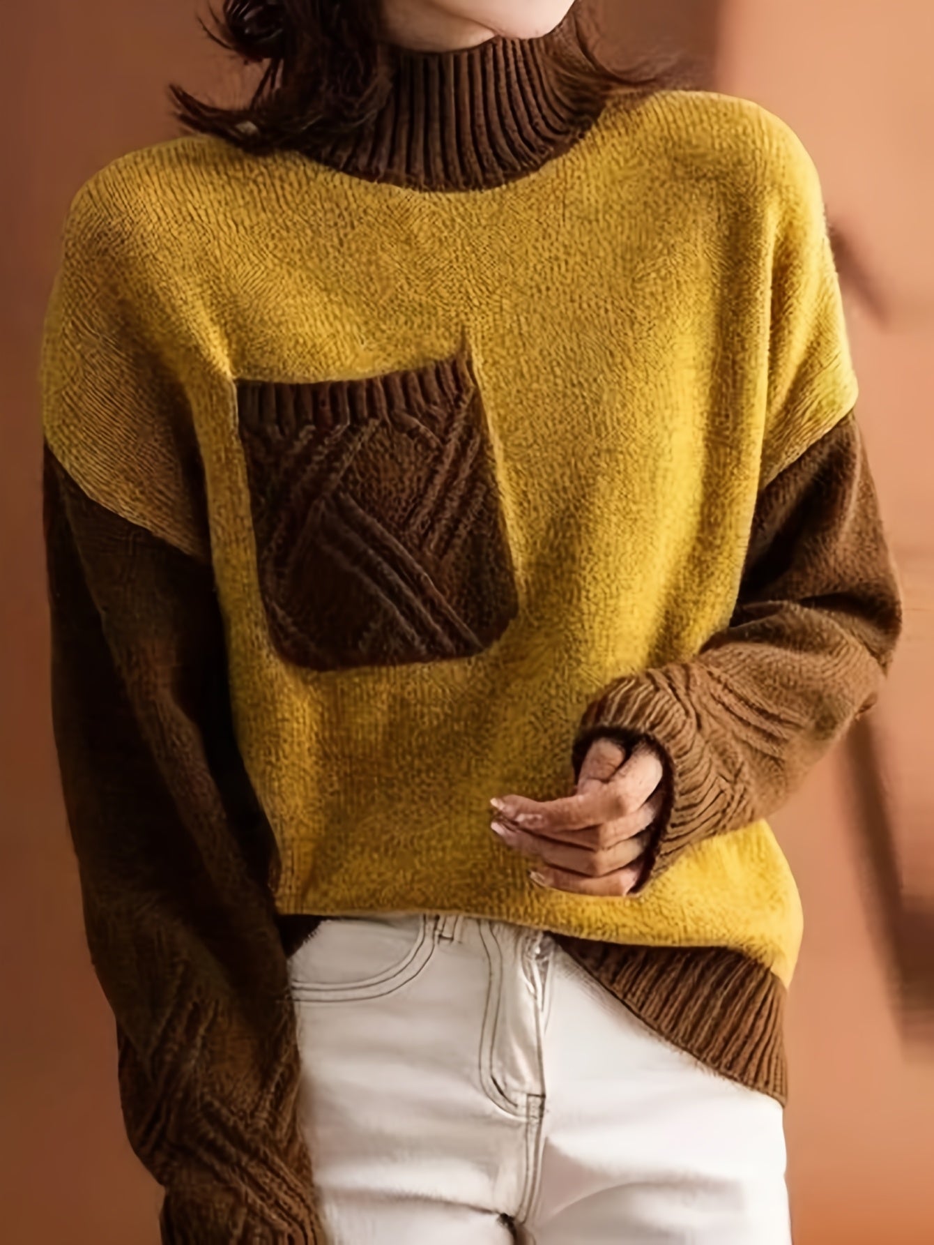 Ce pull col montant dĂ©contractĂ© allie style moderne et confort sans effort avec son motif couleur block tendance et son tissu doux semi-Ă©lastique, offrant chaleur et libertĂ© de mouvement pendant les mois froids đž