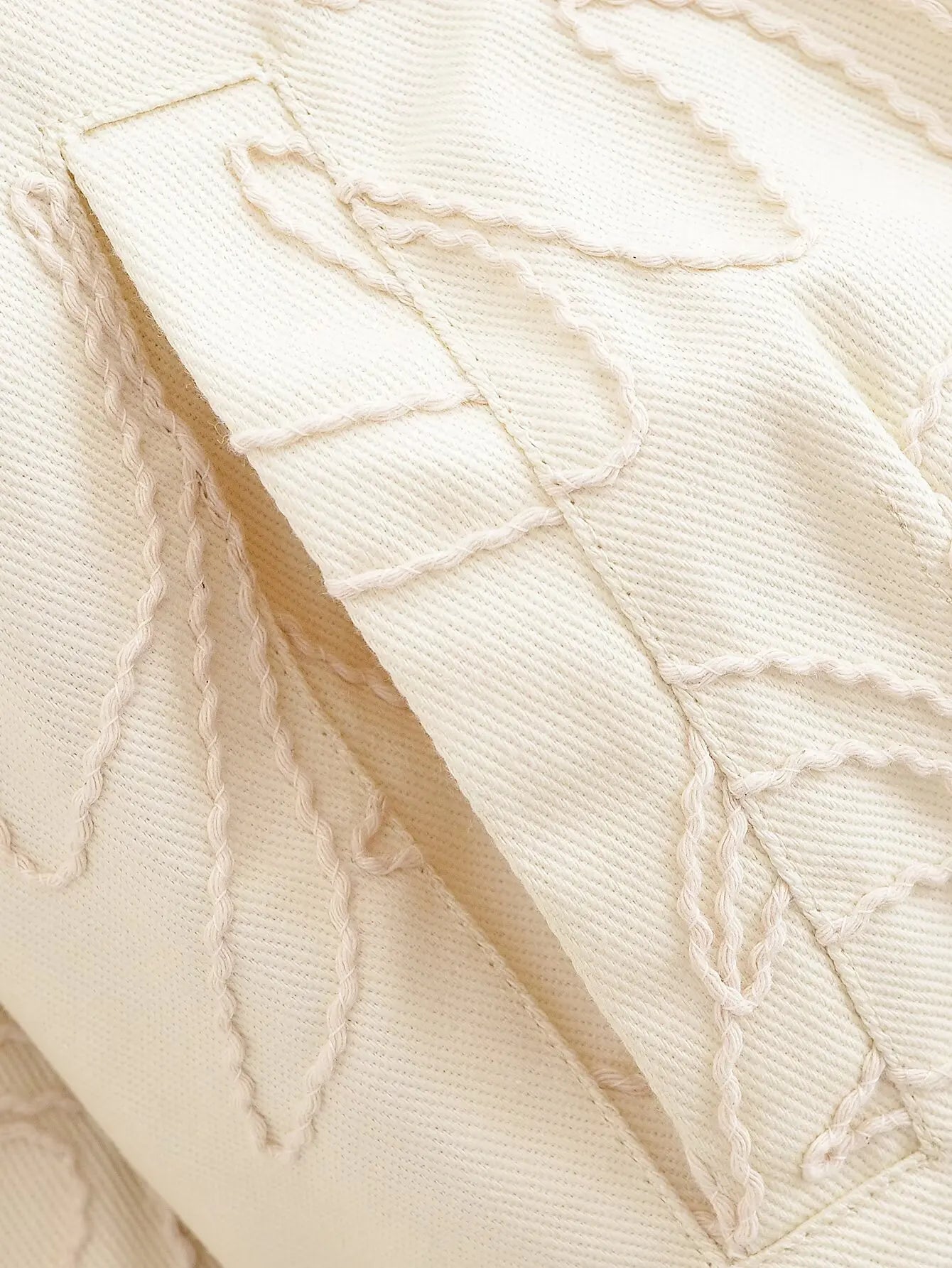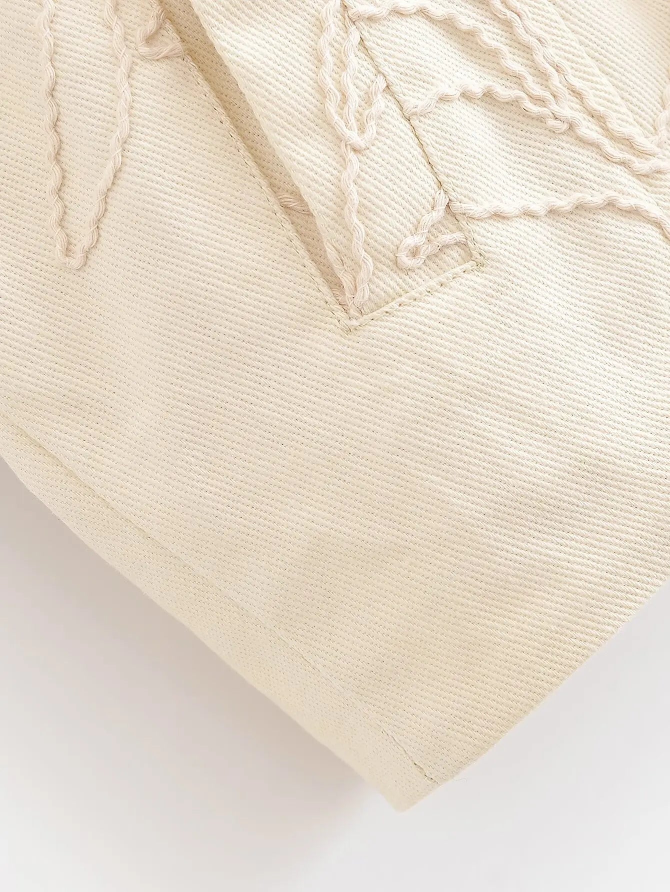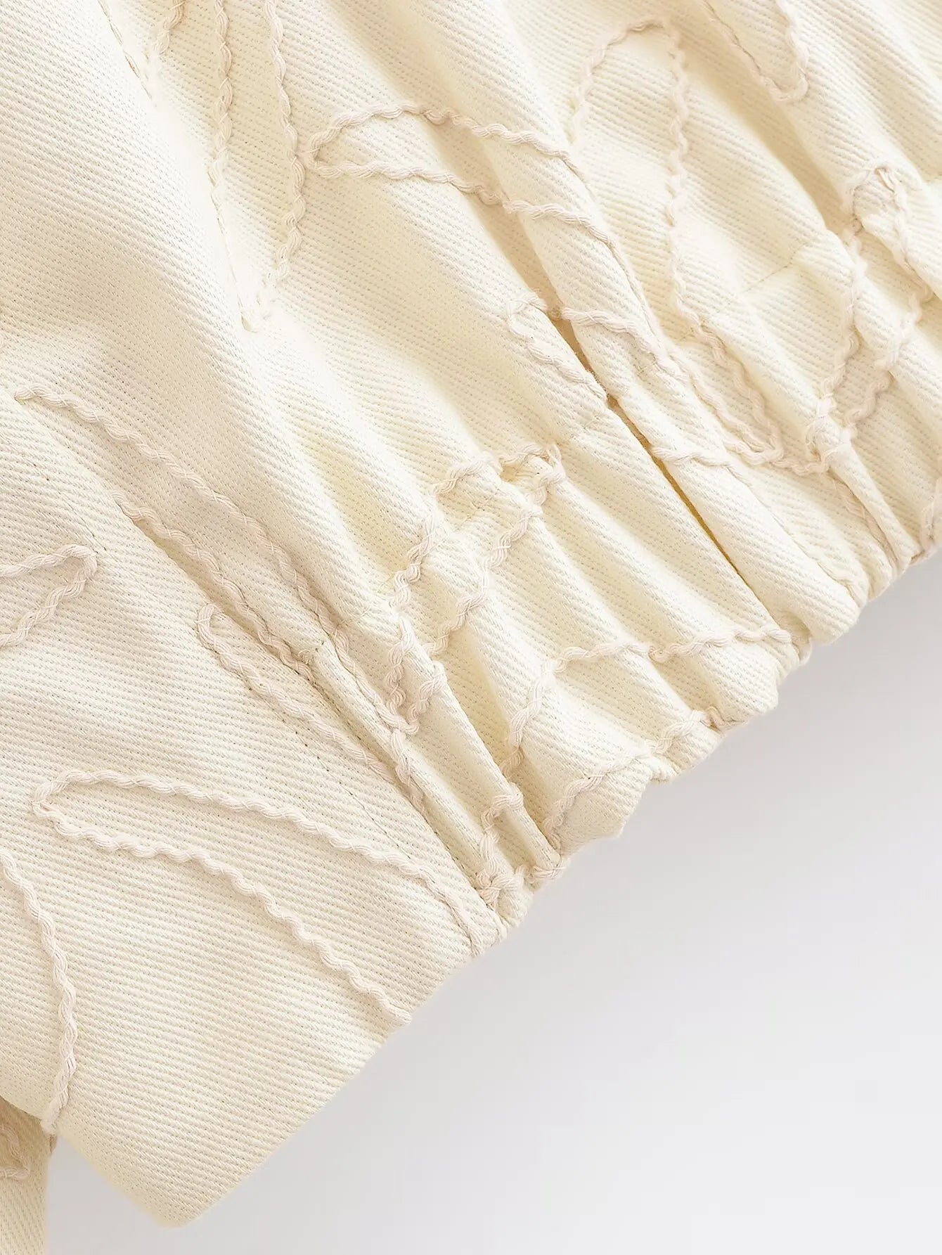 Veste à col rond et manches longues avec poignets élastiqués. Broderie ton sur ton. Poches passepoilées devant. Fermeture zippée métallique.